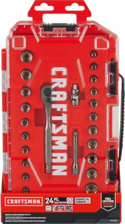 CRAFTSMAN Mechanics Tool Set, 1/4″ Drive, SAE/Metric, 24 Piece (CMMT12028)