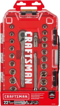 CRAFTSMAN Mechanics Tool Set, 3/8″ Drive, SAE/Metric, 22 Piece (CMMT12029)