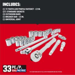 CRAFTSMAN Mechanics Tool Set, 33 Piece, 1/2 Inch Drive SAE/Metric (CMMT12122)