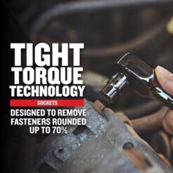 - Tight Torque Technology™ – Complete difficult jobs with sockets designed to remove fasteners rounded up to 70%; Tight Torque Technology™ also helps prevent the rounding of fasteners in common maintenance and automotive applications