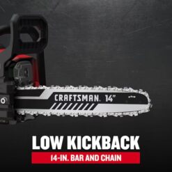 - Low-kickback: Low-kickback 14-in bar and chain goes through even the toughest wood quickly and easily