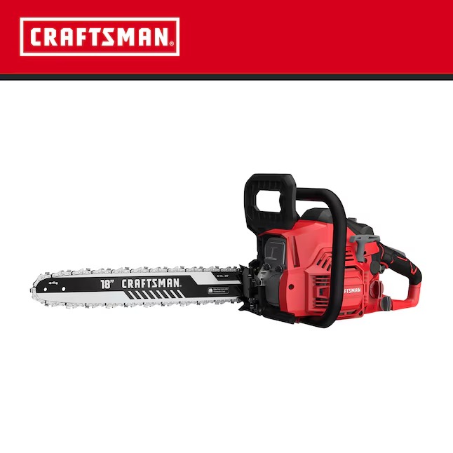 The CRAFTSMAN® S1800 lightweight gas powered chainsaw features a 42cc full-crank high output 2-cycle engine to deliver steady power. The 18-in low-kickback bar and chain goes through even the toughest wood quickly and easily. It is equipped with Easy Pull Start™ technology for simpler pull starts to get the job done fast. The 3-point anti-vibration system makes this chainsaw balanced, maneuverable, and comfortable to operate. Features such as the adjustable automatic oiler, inertia-activated chain brake, and tool-free access to filter and spark plug enhance the design of the chainsaw to make cutting a breeze. Comes with 2-cycle oil.