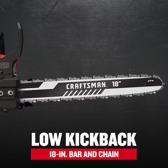 - Low-kickback: Low-kickback 18-in bar and chain goes through even the toughest wood quickly and easily