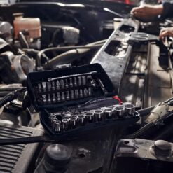 Included Components: (1) 1/4 DR 80T Ratchet | (10) 1/4 DR 6PT Shallow SKT: 7/32″ 1/4″ 9/32″ 5/16″ 11/32″ 3/8″ 13/32″ 7/16″ 1/2″ 9/16″ | (1) 1/4″ Drive Universal Joint | (1) 1/4″ Drive Spring Clip Bit Holder | (1) 1/4″ Drive Short Spinner Handle | (1) 1/4″ Drive 2 inch Extension Bar | (1) 1/4″ Drive 4 inch Extension Bar | (22) Specialty Bits