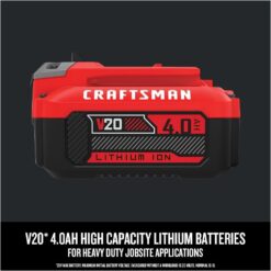 This 2 pack of V20* 4.0Ah Lithium Ion Batteries provides up to 3x the capacity versus the standard of a standard 20V MAX* lithium battery**. CRAFTSMAN 20V batteries are compatible with the CRAFTSMAN V20* cordless power tool and outdoor tool lineup. The professional grade high performance cells provide improved power and a longer cycle life. Each pack is equipped with a 3-LED state of charge for immediate battery charge feedback. No memory and virtually no self-discharge means this CRAFTSMAN 20V battery is ready when you are.