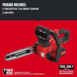 CRAFTSMAN V20 Mini Chainsaw, Cordless, 12 inch, Bare Tool Only (CMCCS620B)