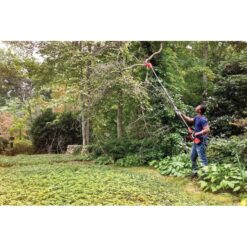 The V20* Cordless Pole Chainsaw (Tool Only) features a powerful motor and extension pole allowing you to tackle tough cutting tasks with up to a 14 ft. max reach**. Once the task is done, conveniently hang the pole chainsaw in your garage to store using the integrated VERSATRACK hook with the VERSATRACK system (sold separately). The V20* Cordless Pole Chainsaw is compatible with the V20* range of batteries and chargers (sold separately). You can purchase the full line of outdoor products available in the V20* system from tools only, such as this pole chainsaw, to the pole chainsaw kit which includes a battery and charger. You’ll find the complete line of V20* outdoor tools and equipment essentials to complete your outdoor projects and make you proud.