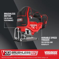 CRAFTSMAN V20 RP Cordless Jig Saw, 3 Orbital Settings, Up to 3,200 SPM, Variable Speed Keyless, Bare Tool Only (CMCS650B)