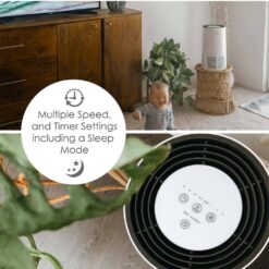 - COMPACT PREMIUM DESIGN: This powerful air purifier’s design is sleek and modern, but fits well with any room’s decor. The unit is only 9.25″ x 9.25″ in depth and width, and 15.3″ in height, making it a perfect compact option for even the smallest of spaces.