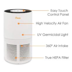 Crane EE-5068 True HEPA Air Purifier with Germicidal UV Light for Small to Medium Rooms up to 300 sq.ft. – Premium