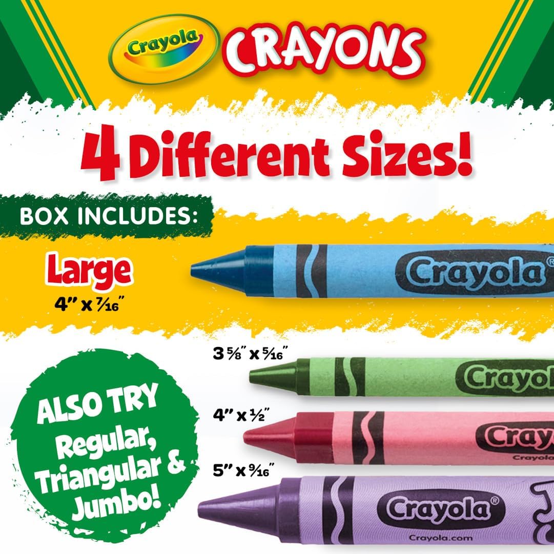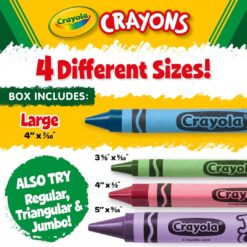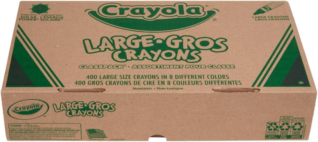 - CRAYOLA CLASSPACK CRAYONS: Features 400 Crayola Large Crayons (4″ x 7/16″) in 8 assorted colors.