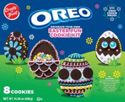 - A twist to your traditional Easter Eggs, this OREO Easter Cookie Decorating Kit includes 8 Easter Egg shaped cookies made with OREO cookie pieces, Mini OREO cookies, multicolored pastel candy, 3 E-Z Soft & Squeezy icing writers, and 1 pre-made crème-flavored icing pouch