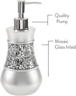 Creative Scents Gray Bathroom Accessories Set – 4 Piece Bathroom Decor Set for Home, Bath Restroom Set Features Soap Dispenser, Toothbrush Holder, Tumbler, Soap Dish – Bling Silver Mosaic Glass
