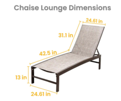 - Full aluminum frame and Textilene fabric are sure to be a reliable patio furniture for your home, what’s more, it has an adjustable angle back, easy assembly required