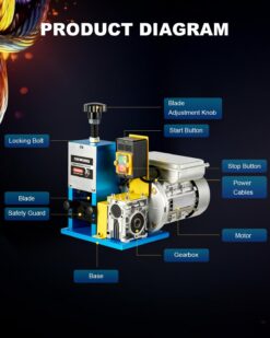 - Effortless & Safe: Set the blade height to suit your exact needs using the adjustment knob, hit the power button, and start feeding your copper cable through the appropriate hole. The emergency stop is standing by if anything goes awry