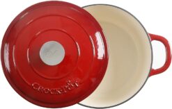 - Crock Pot Artisan Round Enameled Cast Iron Dutch Oven, 5-Quart, Scarlet Red w/Lid