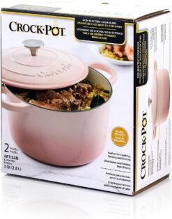 - Crock Pot Artisan Round Enameled Cast Iron Dutch Oven, 3-Quart, Blush Pink w/Lid