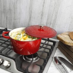 - Crock Pot Artisan Round Enameled Cast Iron Dutch Oven, 3-Quart, Gradient Red w/Lid