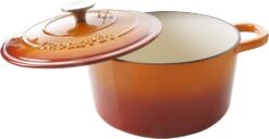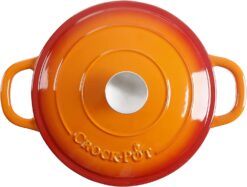 - Crock Pot Artisan Round Enameled Cast Iron Dutch Oven, 5-Quart, Sunset Orange w/Lid