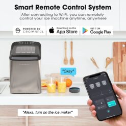 CROWNFUL Smart Ice Maker Countertop, with App Remote Control Ice Machine, 33 lbs/24H, 2 Size (S/L) Ice, Self-Cleaning