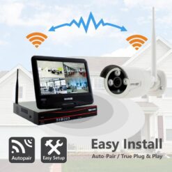 Crystal Vision Technology. It is True HD auto-pair system. It is just plug-in and play type. You will only need to mount the cameras, plug the power and just turn the DEVRY on. It automatically pairs each other and your system setup will be done in 5-minutes. You will no longer have any headache even if you are not a CCTV expert. NVR Built-in 10.1 in. monitor 8-Channel Wireless HD NVR with built-in router Wireless distance: up to 350 ft. in open area Camera and NVR Auto-Pair HEMI outputs: up to 1080p Real time live view, 8-Channel sync-playback at 15fps Support 1 SATA 3.5 in. HDD, support up to 4TB Motion email alerts Easy remote access from anywhere anytime Remote playback videos in HDD from mobile Digital zoom available Power supply: DC 12-Volt 3 Amp Operation temperature: -10°C~55°C-Size: 258 x 210 x 42 mm Camera True HD wireless camera 4 mm lens for wide angle view 3 LED arrays IR distance up to 80 ft. Solid made IP66 cameras Wi-Fi: 802.11b/g/n- Anti-thunder level: Standard IEC61000-4-5 Working temperature: -10°C ~ 50°C- Power supply: 12-Volt 1 Amp Size: 205 x 70 x 55 mm Package Includes 1x 8-Channel Wireless True HD NVR with built-in 10.1 in. monitor 6x Wireless True HD cameras 1x 12-Volt 3 Amp Power adapter for NVR 6x 12-Volt 1 Amp Power adapter for cameras 6x 18 ft. Power extension cable 1x 3 ft. Network cable 1x Mouse 1x User guide.