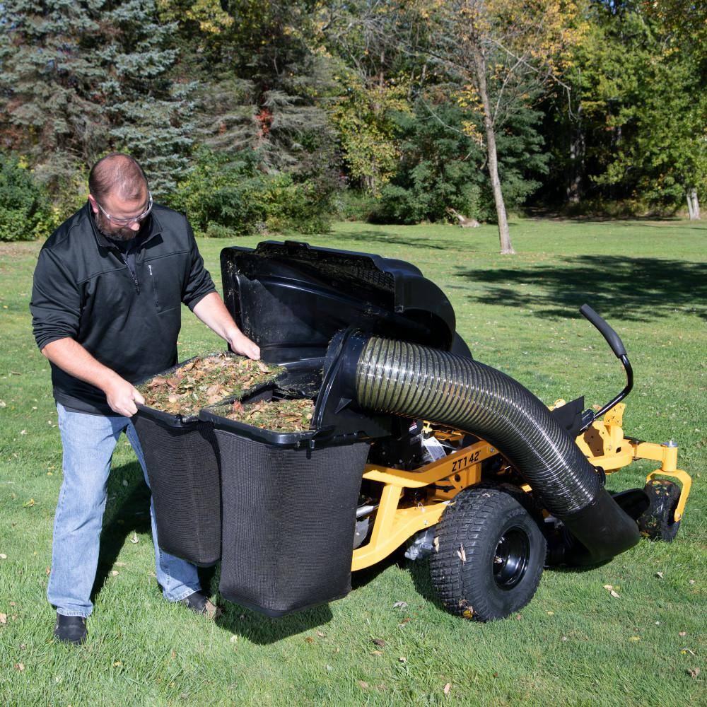 Collect grass clippings quickly and easily with the Cub Cadet 42 in./46 in. Ultima Series double bagger. The flexible tubing is easy to attach and lets you see the flow of grass as you mow. With this bagger, you’ll be able to keep your lawn looking clean and well-manicured.