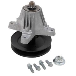 Spindles and pulleys work together to rotate the mower blades for an even cut. The triple sealed maintenance free bearing prevents impurities from entering the ball bearing. It does not require lubrication so the spindle is consistently working smoothly.