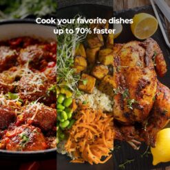 - EFFICIENT & SMART: Features an LED screen complete with jog dial controls, adjustable temperature settings, a convenient delay timer, and a COMBO function that will automatically transition from sauté to any other cooking option!