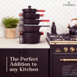 Cuisinel Pan Organizer – Silicone-Coated Non-Slip 15″ Heavy Duty Skillet Rack – Kitchen Counter/Cabinet Organization Storage – Cookie Sheet, Cutting Board, Cast Iron Cookware, Pots, Lid Stand/Holder