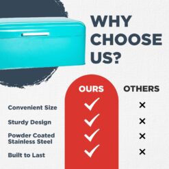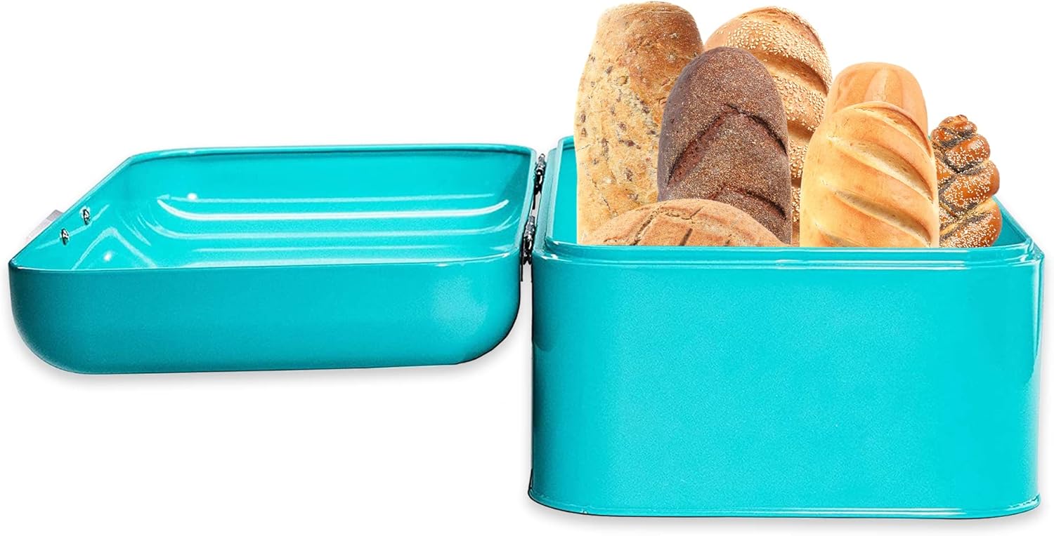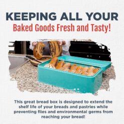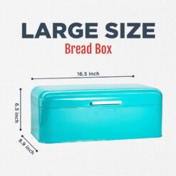 Culinary Couture Extra Large Turquoise Bread Box for Kitchen Countertop – Holds 2 Bread Loaves! – 16.5″ x 9″ x 6.5″ – Stainless Steel Vintage Bread Boxes for Kitchen Counters