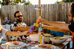Carbonated Filtered Water, Organic Juice Blend from concentrate (White Grape, Ginger,Lemon, Pink Grapefruit, Lime, Organe, Mango), Natural Flavor, Citric Acid, Organic Coriander, Live Probiotic (Bacillus Subtilis), Organic Turmeric. Organic Juniper Berry, Sea Salt. Organic Cardamom, Organic Makrut Lime Leaves. Organic Chili Powder, Beta Carotene