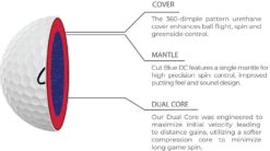 Cut Golf Cut DC Golf Balls – White Meet Cut DC, the newest addition to the Cut Golf line-up. With Dual Core technology, Cut DC was carefully designed to meet the rigorous performance and quality demands of players at all skill levels at an absurd value. Also available in Atomic Yellow. “A rare four-piece model at this price point, it uses a softer inner core with a firmer outer core and firm overall compression to enhance velocity on full shots.