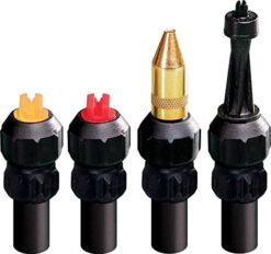 - 4 nozzles included: brass adjustable, 2 flat fans, and foaming nozzle. Also accepts Tee Jet nozzles.