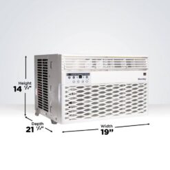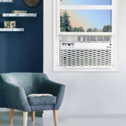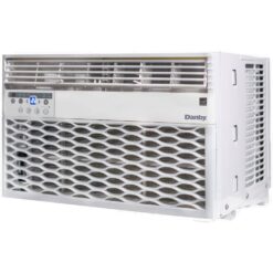 This 12,000 BTU window air conditioner by Danby is perfect for living spaces up to 550 sq. ft. This air conditioner is Energy Star rated and comes with a 24-hour programmable timer, sleep mode and energy saver switch to reduce overall operating costs. To help maximize cooling, this unit comes with 4-way air direction, 3 speed fan and a ‘follow me’ feature where the remote control has a built-in thermostat that allows for more precise cooling. The LED display features electronic controls and a remote control.