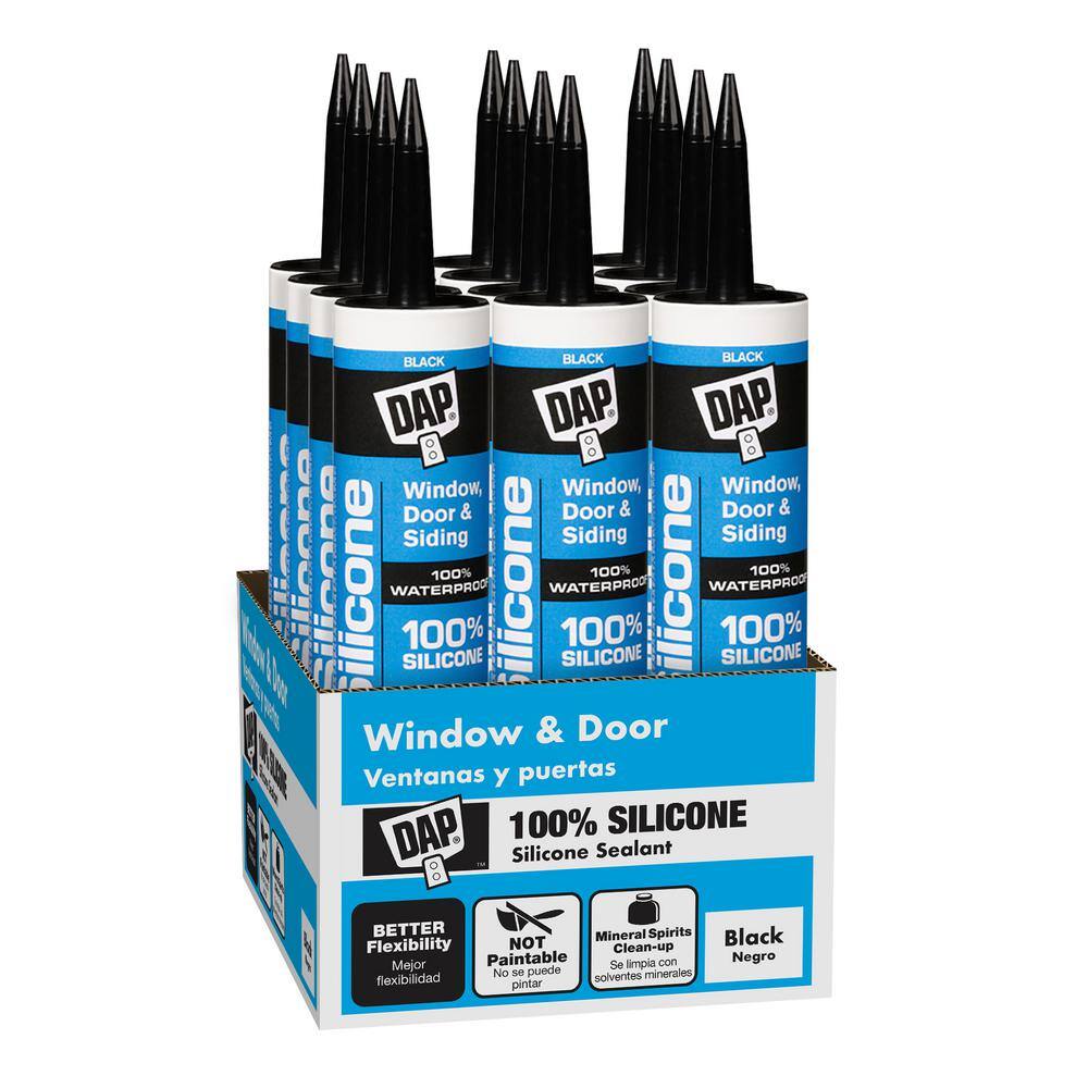 DAP 100% Silicone Rubber Window, Door & Siding Sealant is a durable, 100% waterproof and weatherproof, all-purpose sealant. Works great for caulking and sealing out drafts, water and moisture around windows, doors, siding, gutters, flashing, pipes, vents and more. All purpose black silicone stays flexible to withstand expansion and contraction without cracking or losing adhesion. The cured silicone sealant is mold and mildew resistant. DAP caulk and sealants provide durable performance for a variety of projects.