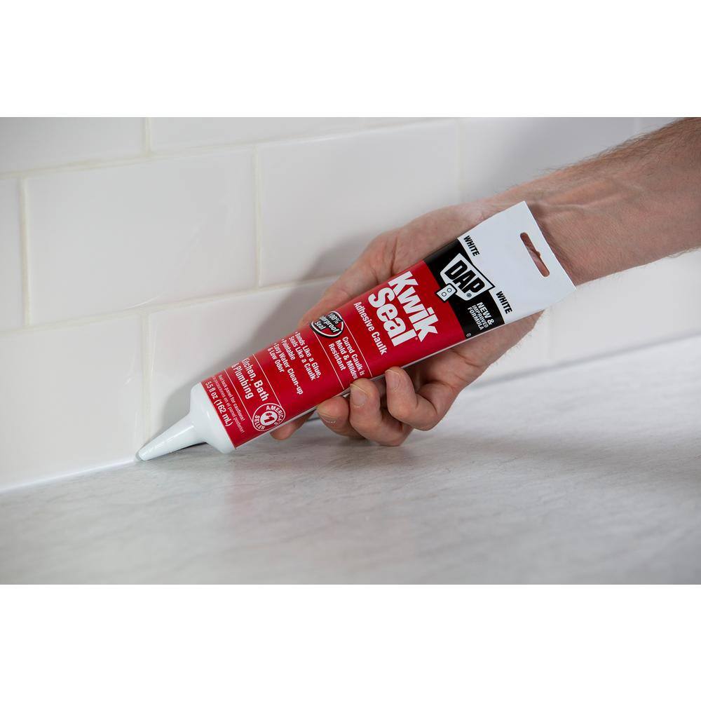 DAP Kwik Seal Kitchen & Bath Adhesive Caulk is an easy-to-use acrylic latex that bonds like a glue and seals like a caulk. Use Kwik Seal Caulk to seal out water and moisture around tubs, showers, faucets, sinks, vanities, counter tops and fixtures. Once cured, DAP caulk is mold and mildew resistant and 100% waterproof. Kitchen and Bath caulk is easy to apply, paintable, low in odor and cleans up easily with water. DAP caulk and sealants provide durable performance for a variety of projects including bathroom caulk projects.