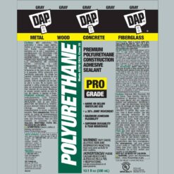 DAP Premium Polyurethane Construction Adhesive Sealant is a 1-part, moisture-curing, non-sag elastomeric commercial grade sealant. It is specially formulated to provide a long-lasting durable seal when filling exterior gaps, joints and cracks. This high-performance sealant offers superior adhesion to most substrates and remains flexible to withstand up to 70% total joint movement when installed into a properly prepared joint. It has exceptional cut and tear resistance, handles foot and vehicle traffic and may be used above or below waterline (including potable water applications).