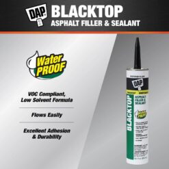 DAP Blacktop Asphalt VOC Compliant Filler & Sealant is a high-quality, professional-grade asphalt-based compound that is ready to use with no heating or mixing required. Use to make fast and easy repairs. Blacktop filler is designed to fill and seal cracks in asphalt surfaces. Formulated to flow smoothly into gaps and create a durable barrier that prevents water infiltration helping avoid ice damage and surface deterioration. It provides a robust, waterproof, and weatherproof seal that offers exceptional adhesion. Resists crumbling and drying out due to temperature fluctuations, UV exposure, and other harsh weather conditions. DAP sealant will not run or bubble in hot weather, and will not crack or become brittle in cold conditions. Drying into a matte black finish, it can be further coated with asphalt or tar-based driveway treatments. Holds up to the elements by resisting oil grease, and salt. Exterior use. DAP caulk and sealants provide durable performance for a variety of projects.