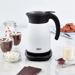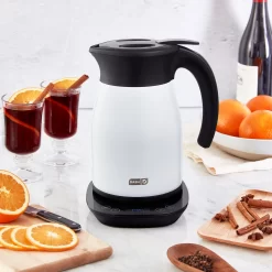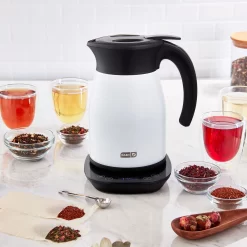 - The Dash Insulated Kettle has a 1.7L capacity, cool-touch housing, and holds heat for hours