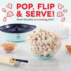 DASH SmartStore™ Stirring Popcorn Maker, 3QT Hot Oil Electric Popcorn Machine with Clear Bowl, 12 Cups – Aqua