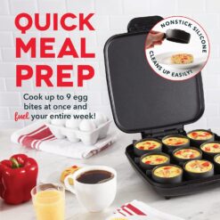 DASH Sous Vide Style Family Size Egg Bite Maker for Breakfast Bites, Sandwiches, Healthy Snacks or Desserts, Keto & Paleo Friendly (9 Servings), Black