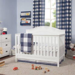 The polished Charlie 4-in-1 Crib features a graceful arched headboard with delicately carved molding and slim feet. The crib easily converts from crib to toddler bed, daybed and full-size bed. The Charlie 4 in 1 Convertible Crib has been tested for over 10,000 chemical emissions and VOCs, undergoing rigorous scientific testing to meet some of the world’s most stringent chemical emissions requirements. It contributes to cleaner indoor air, creating a healthier environment for your baby to sleep, play, and grow. With 4 adjustable mattress positions that you can lower as your baby begins to sit and stand. We’ve built this crib to withstand even the most active babies and toddlers and last through your child’s teen years.