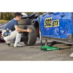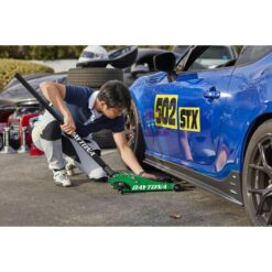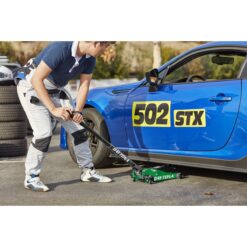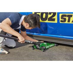 RAPID PUMP® aluminum racing jack has a dual parallel pump system that lifts vehicles quickly with twice the height per pump. Constructed from high strength aluminum billet, this DAYTONA™ low profile racing jack has a universal joint release mechanism for controlled descents of your load from any handle position. The racing jack needs just 1/2 turn release for lightning-fast pit stops.