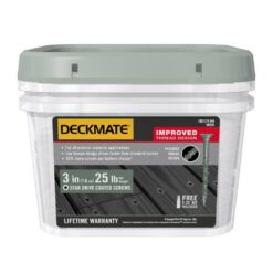 Designed to make the most out of your outdoor project. Use the Deckmate brand exterior screws for all treated lumber and all exterior projects to connect wood to wood. A lifetime polymer coating provides extra corrosion resistance. Deckmate is guaranteed for the life of your outdoor project.