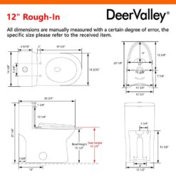DEERVALLEY DV-1F52508 Symmetry 12 in. Rough in Size 1-Piece 1.1/1.6 GPF Dual Flush Elongated Toilet in White, Seat Included