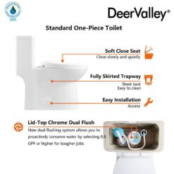 This DEERVALLEY 1-piece toilet is made from incredibly hard-wearing ceramic that can improve durability. A fully skirted trapway is both easy to clean and visually appealing, to be extremely resistant to scratches and stains. Flush can achieve a great MaP score which keeps the toilet clean as a new one after every flush. A compact elongated bowl toilet will make you feel more comfortable.