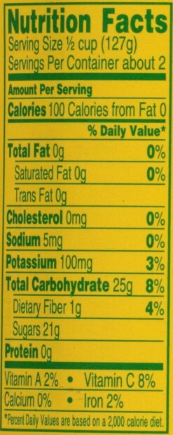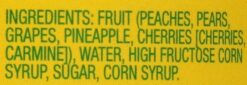 FRUIT (PEACHES, PEARS, GRAPES, PINEAPPLE, CHERRIES [CHERRIES, CARMINE COLOR]), WATER, HIGH FRUCTOSE CORN SYRUP, SUGAR, CORN SYRUP..