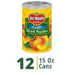 - Twelve 15 oz cans of DEL MONTE Yellow Cling Sliced Peaches in Extra Light Syrup