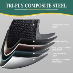 - 【WHOLE-CLAD HONEYCOMB】The hexagonal honeycomb design creates a barrier to protect the nonstick coating against peeling and flaking. With the advantage of anti-scratch, support the use of metal utensils such as spatulas.