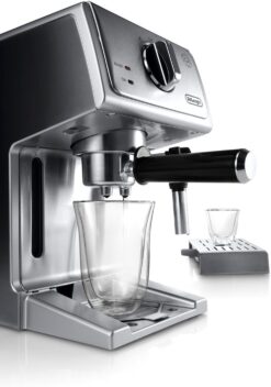 Whatever your preference, single or double espresso, cappuccinos, or lattes, the De’Longhi ECP3630 15 Bar Pump Espresso Machine ensures barista quality results at home so you can enjoy your favorite coffee house beverages at home. The advanced cappuccino system with hot milk or cappuccino selector, mixes and steams milk to a rich, creamy froth for evenly textured drinks. Other features include a double layer drip tray, removable water tank, and fill stainless steel housing.